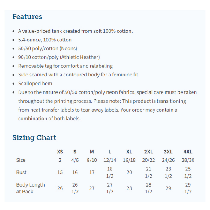 Enjoy this soft Port & Company Ladies Core Cotton Tank Top. Full coverage front & back. Color: Neon..
