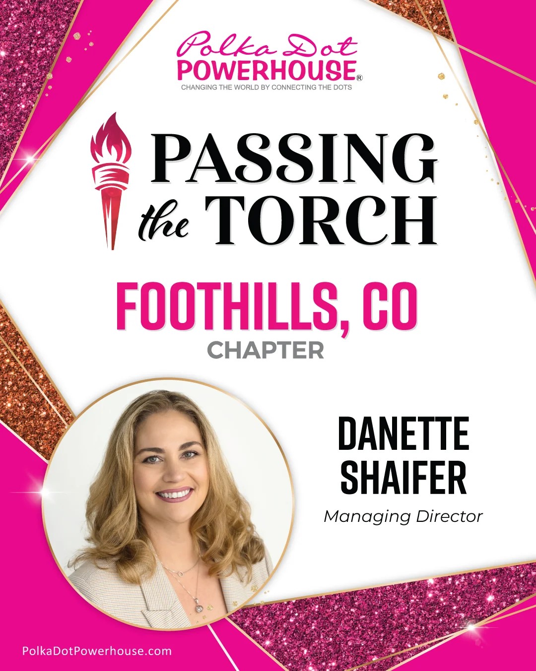 The Polka Dot Powerhouse – Foothills Chapter will officially be Passing the Torch to Danette Shaifer as our new Managing Director.