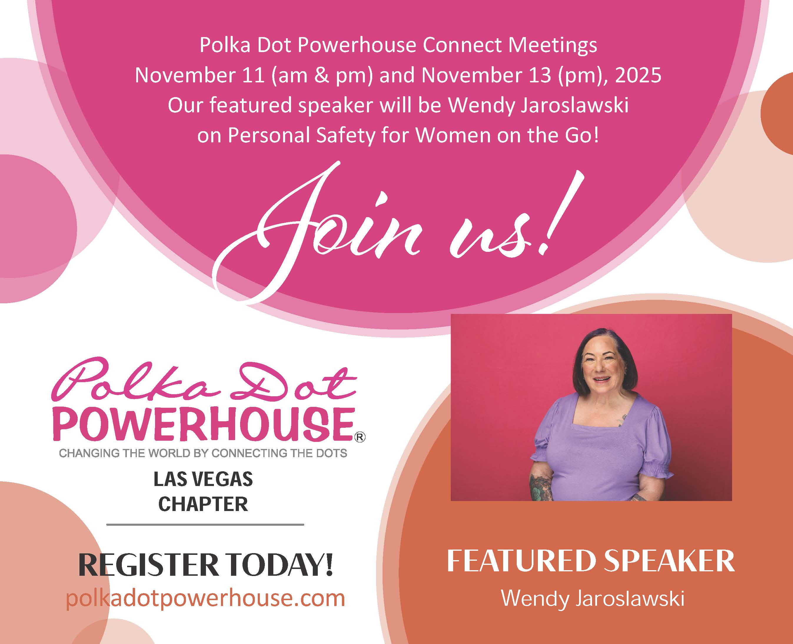 Featured speaker is our own Las Vegas Dot Sister, Wendy Jaroslawski (Jay) presenting 'Personal Safety for Women on the GO'.