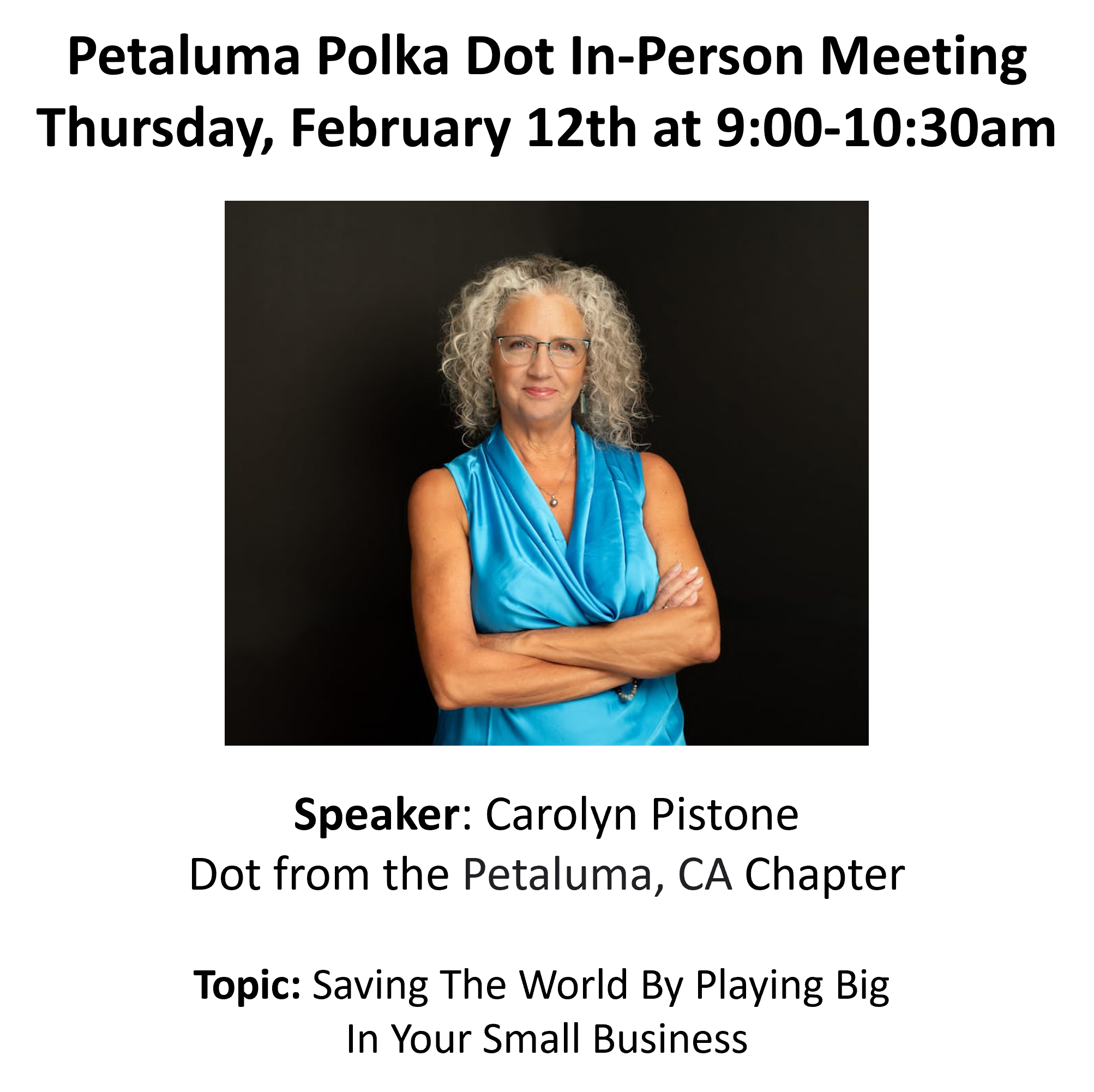 Petaluma Polka Dot Powerhouse Morning Mastermind at 9am PST Carolyn Pistone