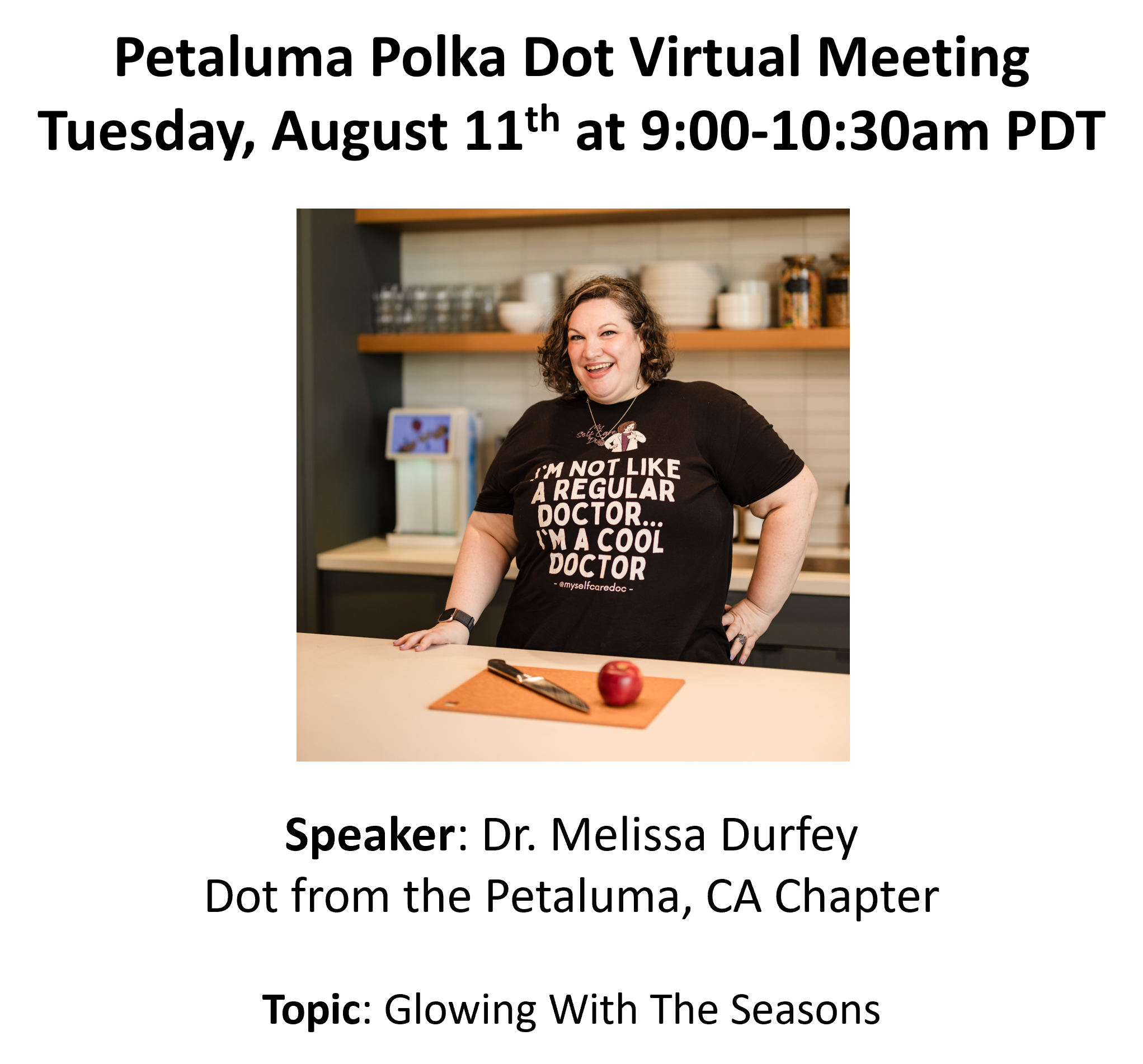 Petaluma Polka Dot Powerhouse Virtual Connect at 9am PST featuring Dr. Melissa Durfey