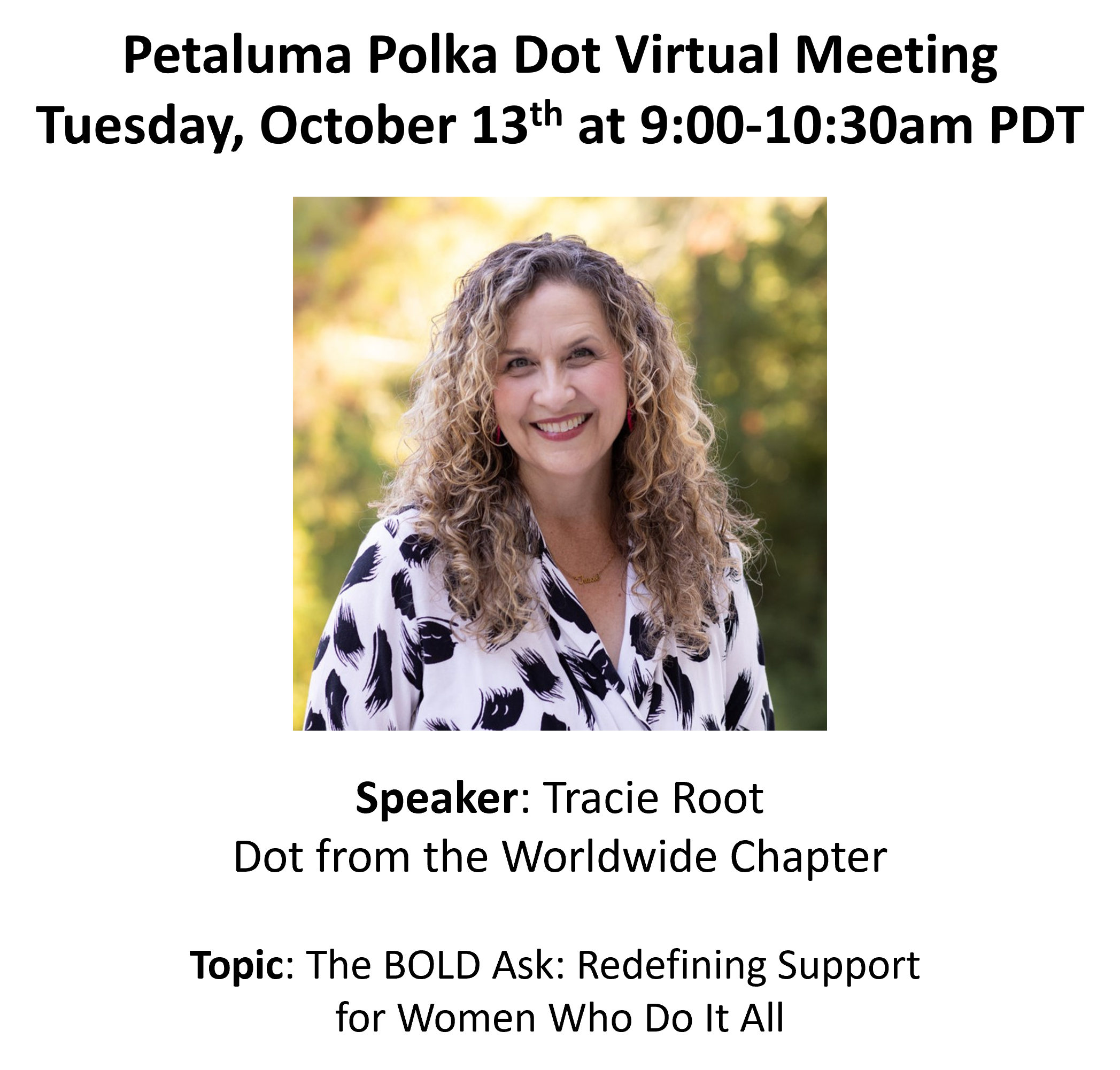 Petaluma Polka Dot Powerhouse Virtual Connect at 9am Featuring Tracie Root