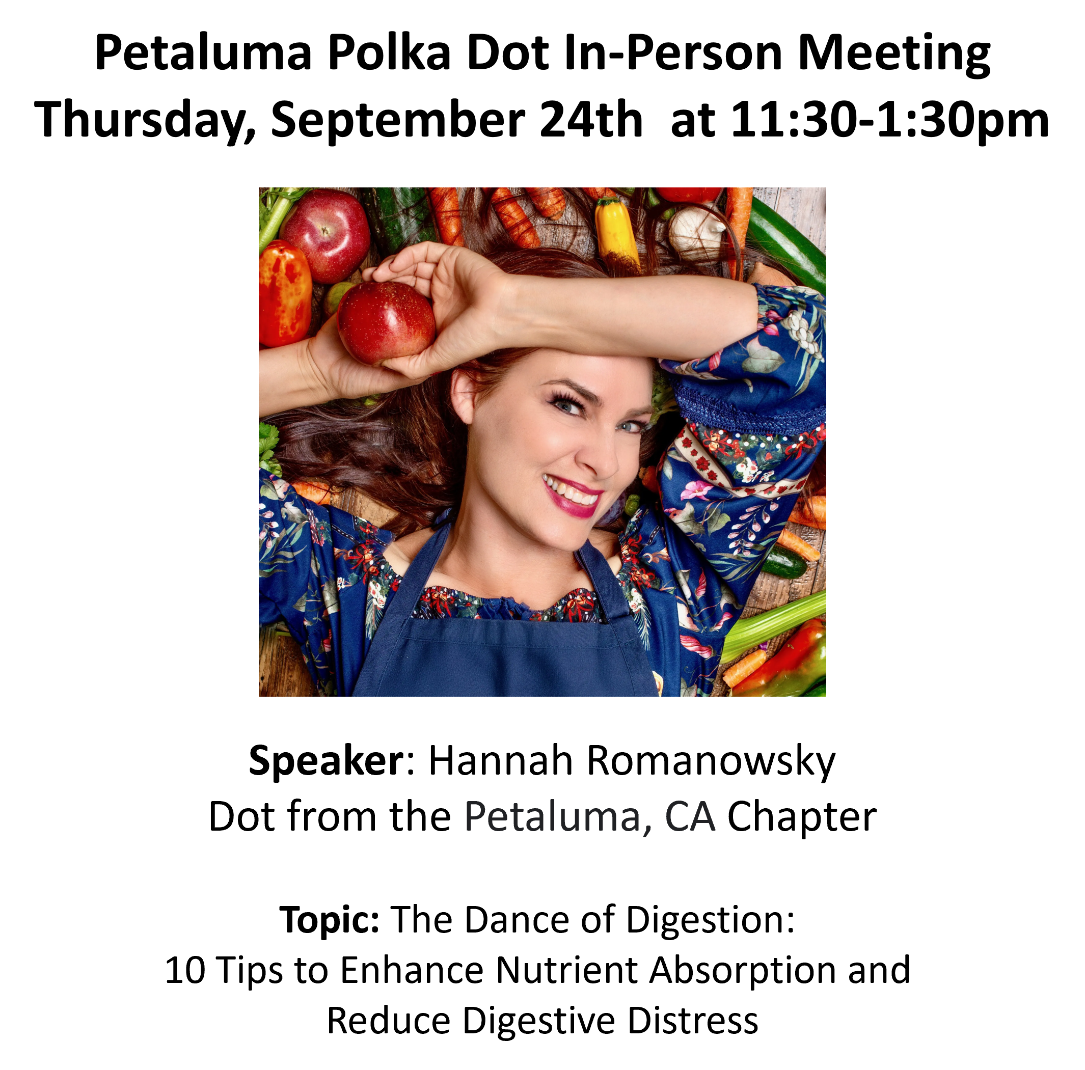 Petaluma Polka Dot Powerhouse In-Person Meeting at 11:30am PST featuring Hannah Romanosky