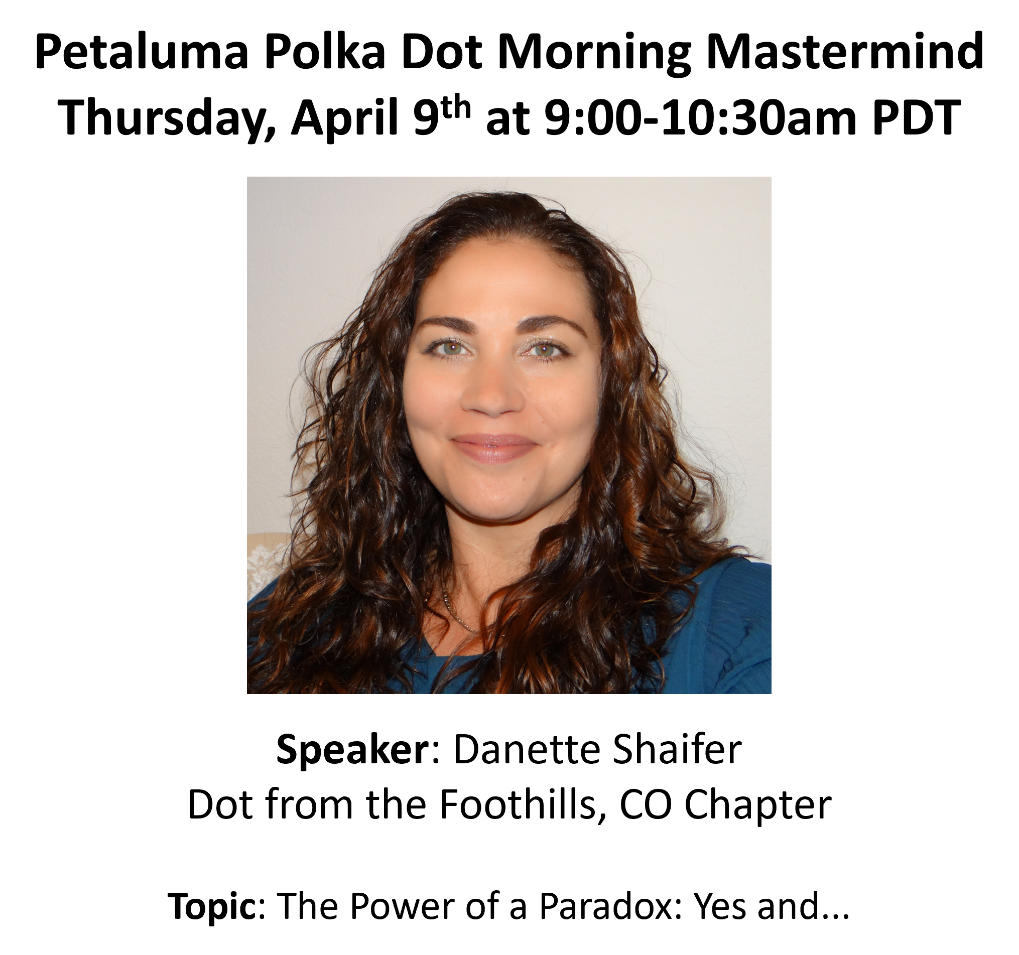 Petaluma Polka Dot Powerhouse Morning Mastermind at 9am PST featuring Danette Shaifer